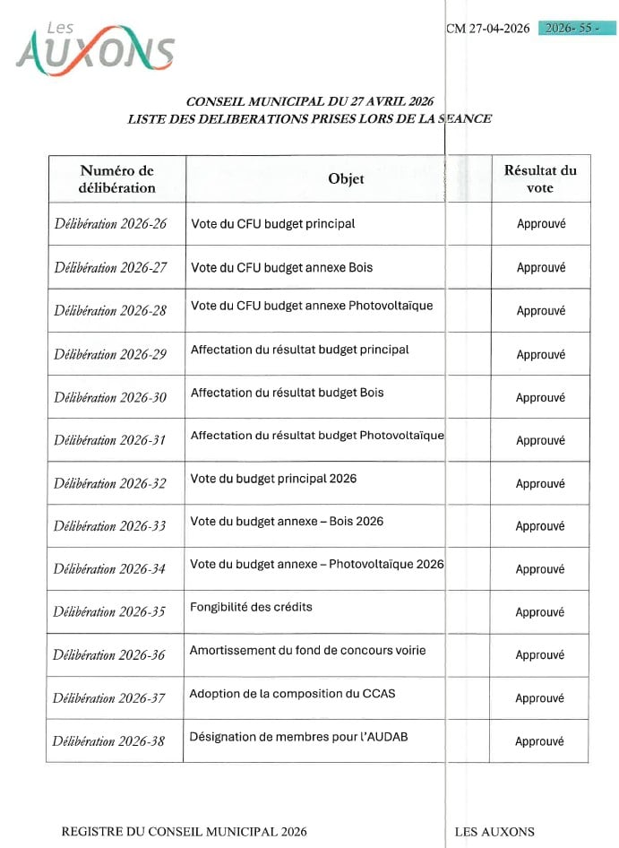 Délibérations du Conseil Municipal du 27 avril 2026